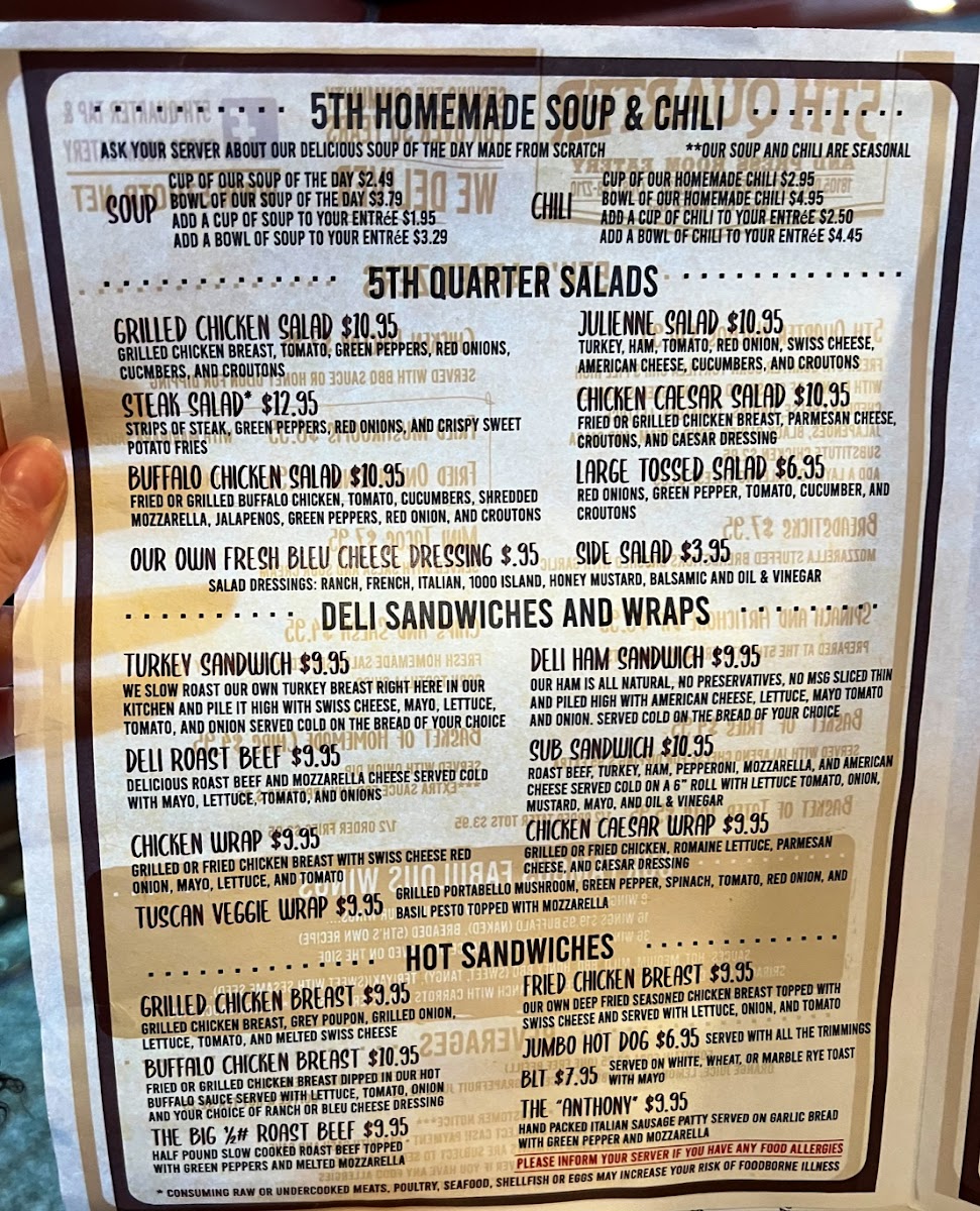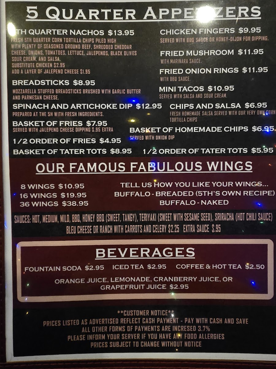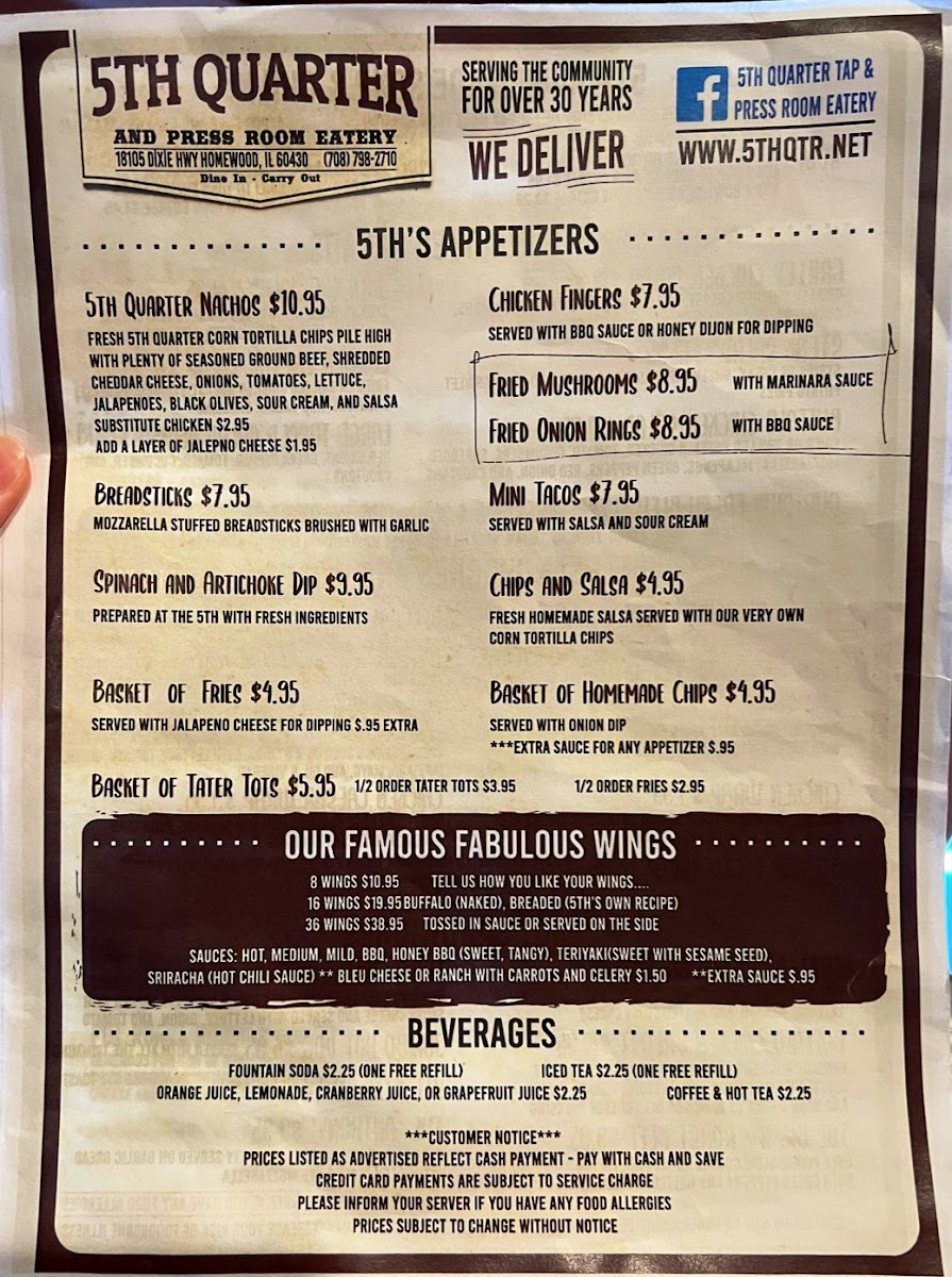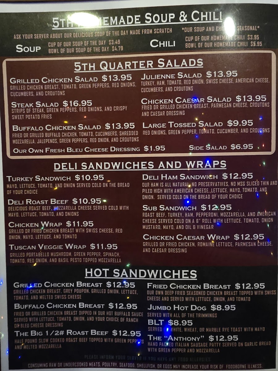 Overall, the menu complements the easygoing vibe of Fifth Quarter Tap, encouraging guests to linger over familiar flavors and comforting drinks in good company.