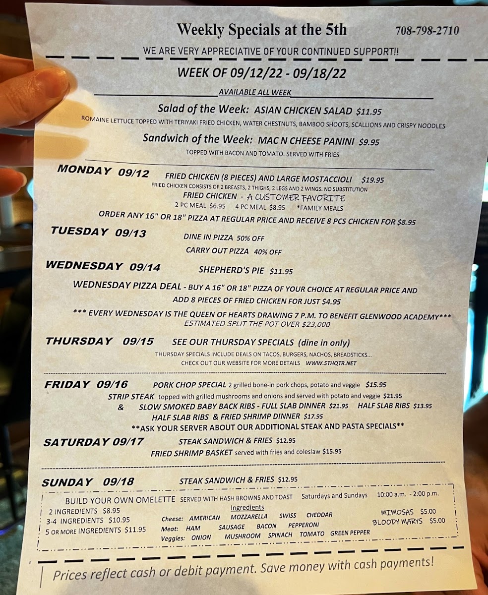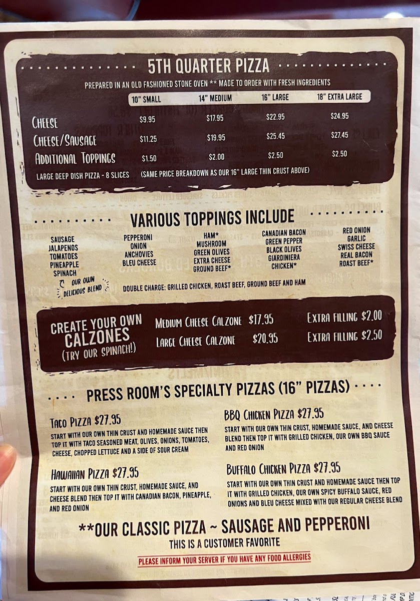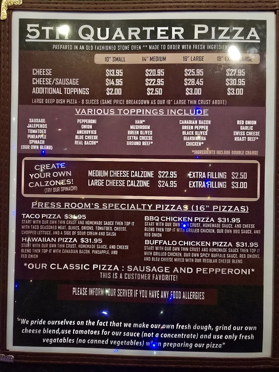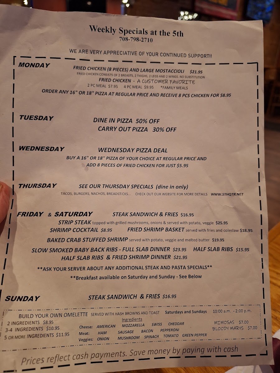 Overall, the menu complements the easygoing vibe of Fifth Quarter Tap, encouraging guests to linger over familiar flavors and comforting drinks in good company.